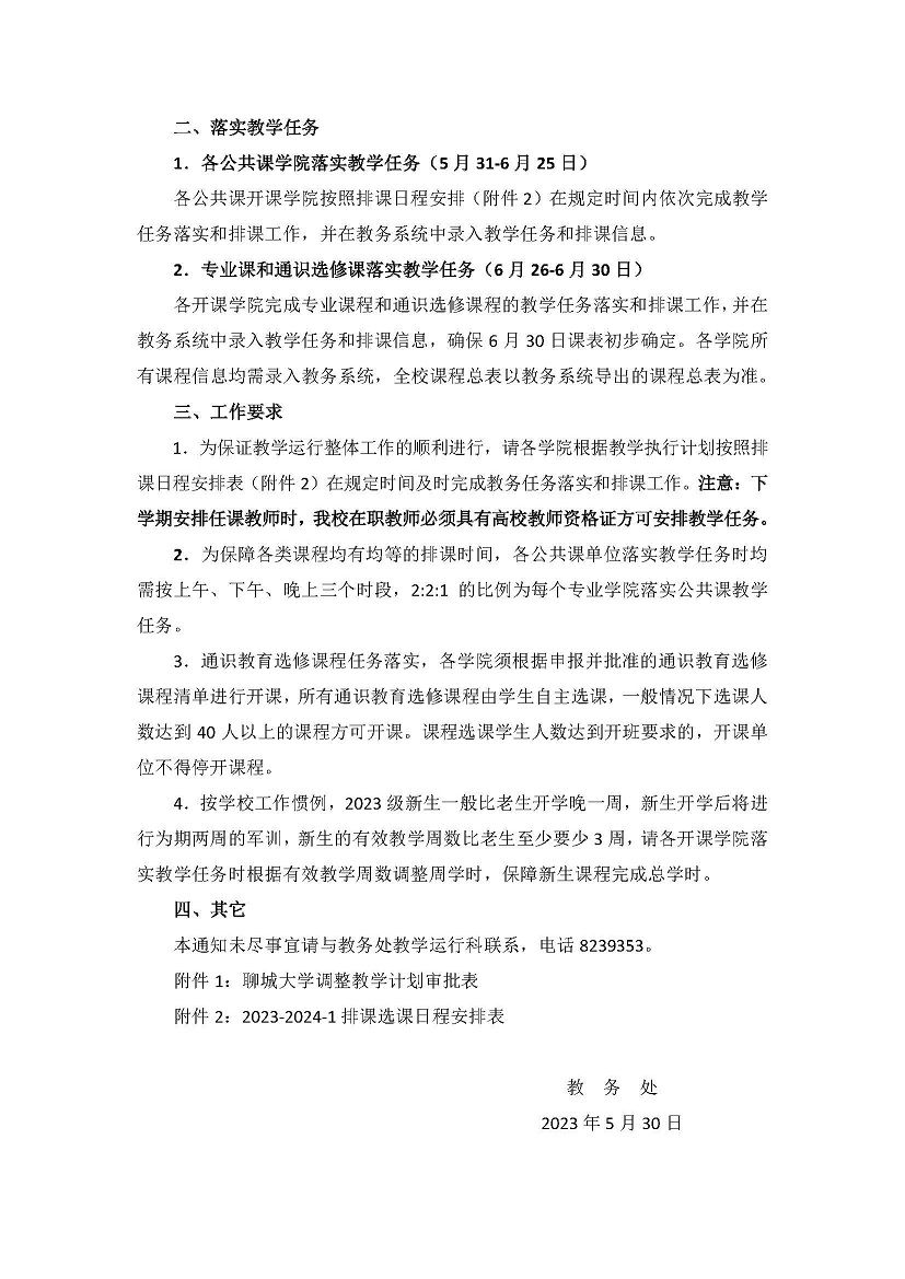 关于落实2023—2024学年第一学期本科生教学任务的通知