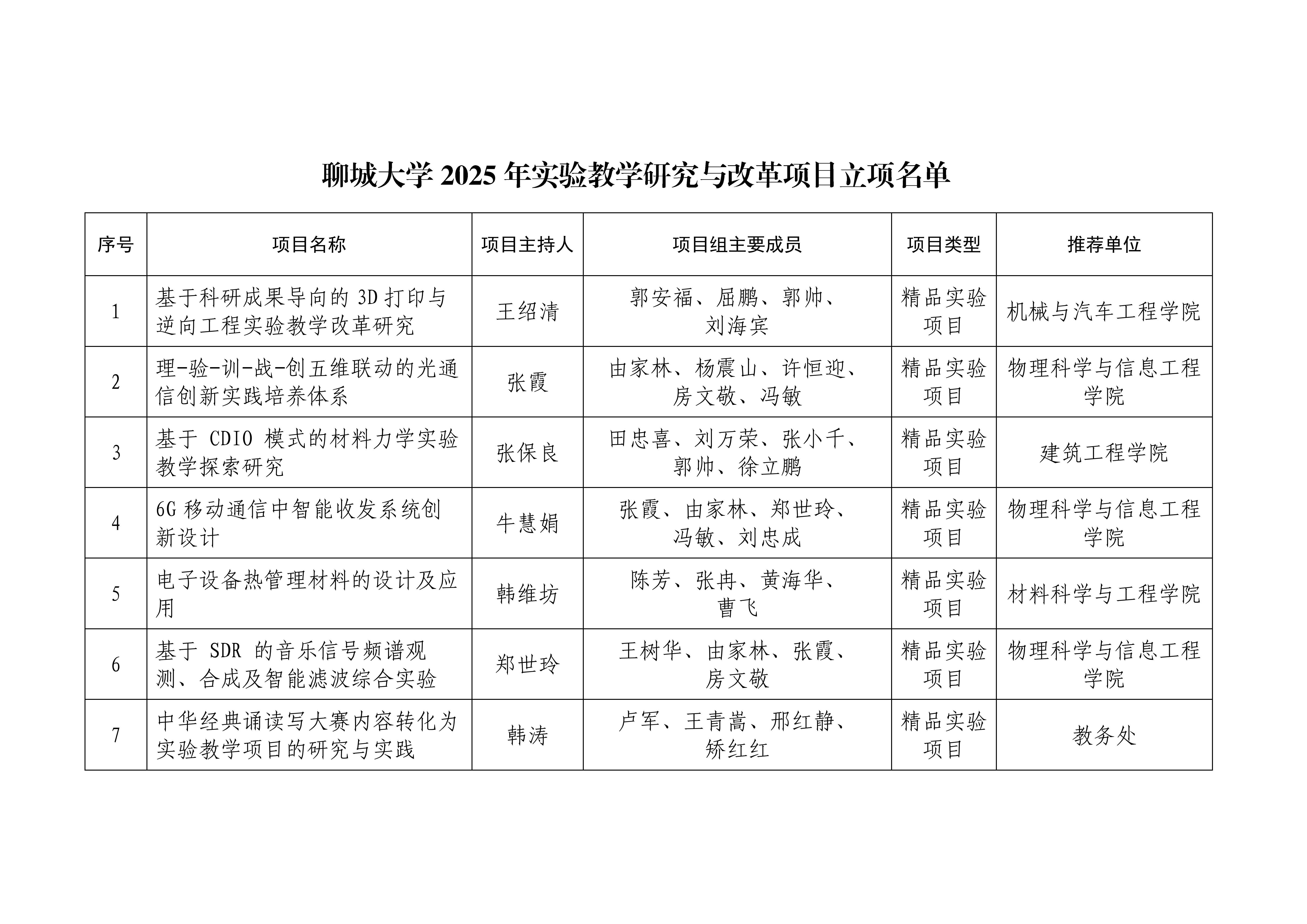太阳集团1088vip2025年度实验教学研究与改革项目拟立项名单公示